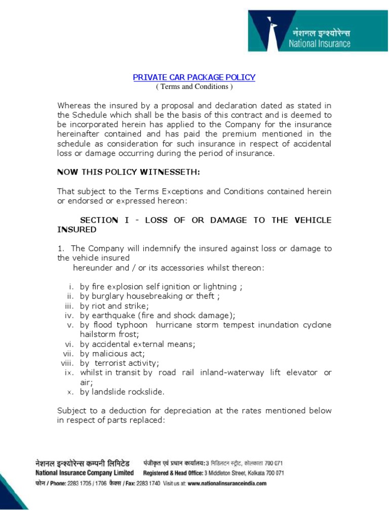 Terms of Private Car Pakage | Indemnity | Insurance