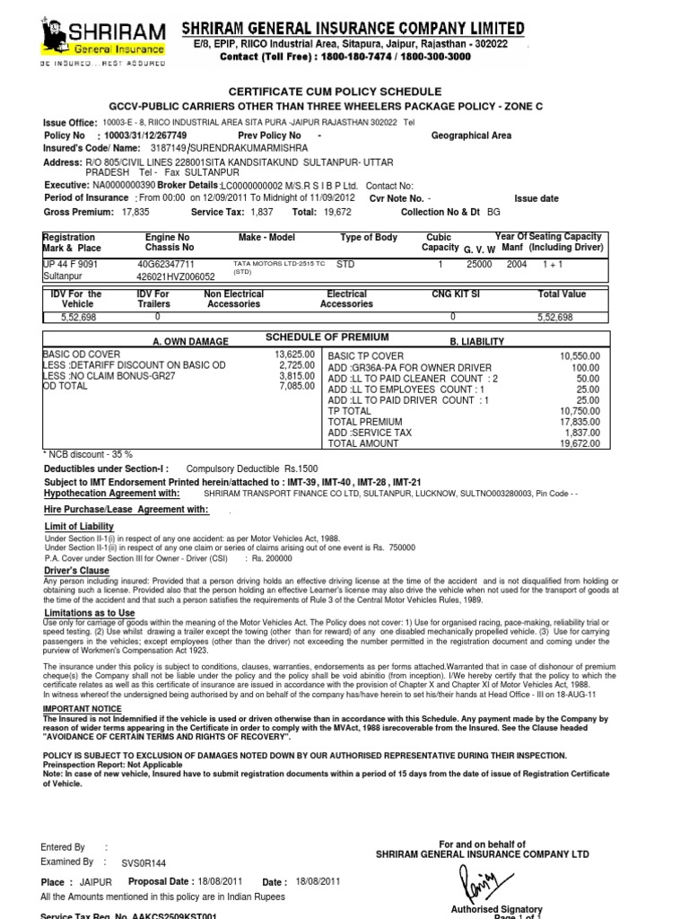 Shriram Car Insurance Policy Download