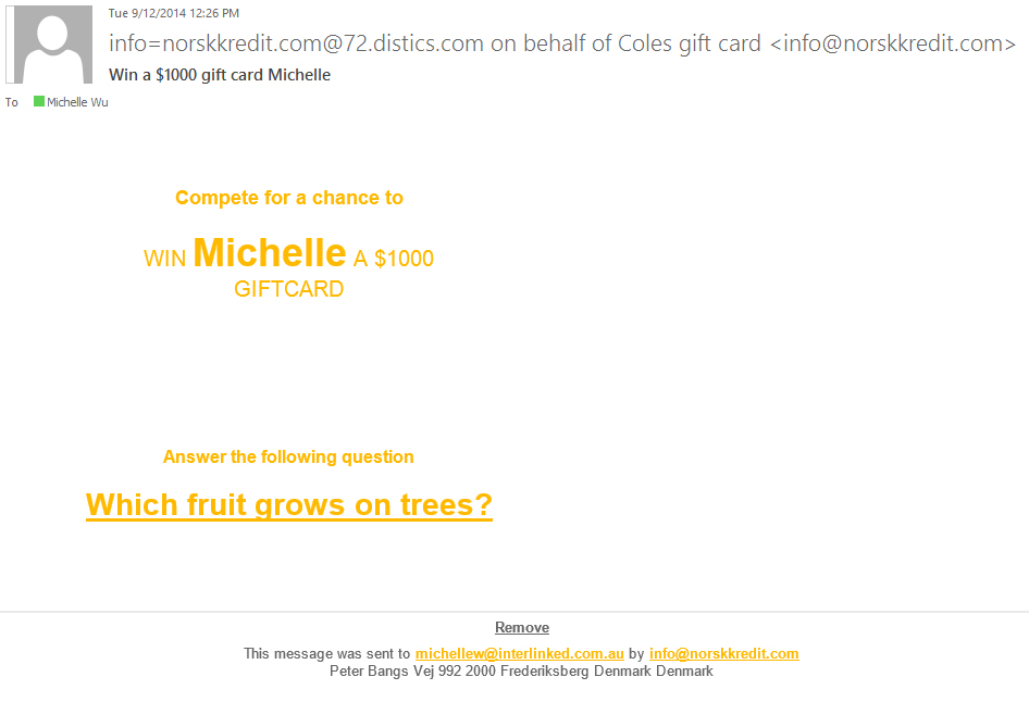 Coles Scam Email | Interlinked