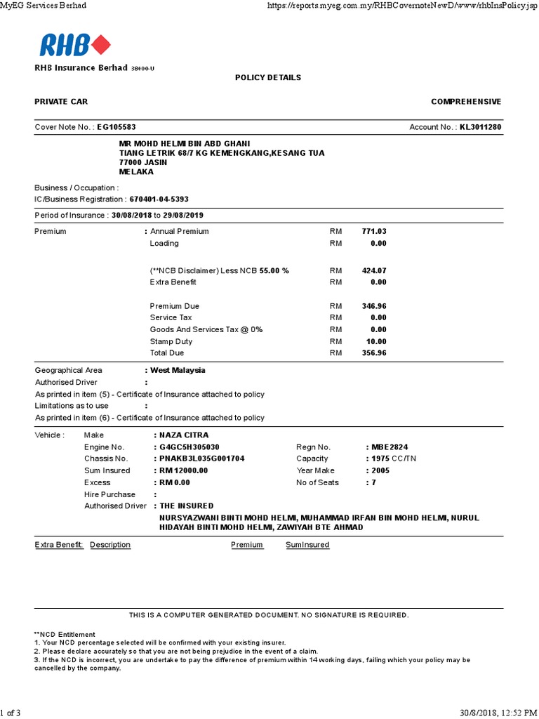 Rhb Car Insurance Cover Note is an important document that serves as proof that an individual has purchased car insurance. It is necessary in order to drive legally and to prove financial responsibility in the event of an accident or other incident. It is important to keep the Cover Note in a safe place, as it is a form of identification and proof of financial responsibility. To obtain a valid Rhb Car Insurance Cover Note, you must purchase car insurance from an authorized insurance company.