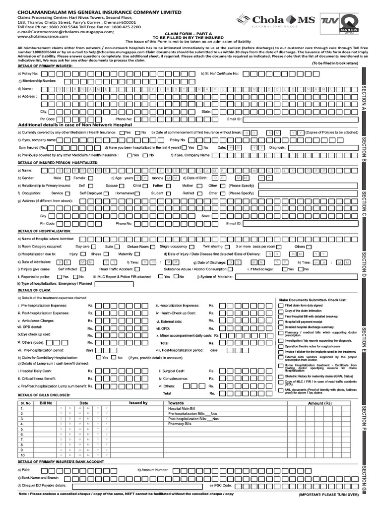 CHOLAMANDALAM MOTOR CLAIM FORM PDF - ClaimForms.net