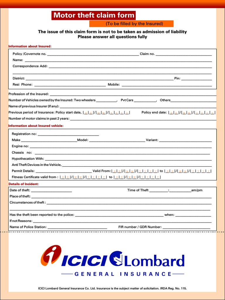 Motor Claim Form Theft | Insurance | Social Institutions | Free 30-day